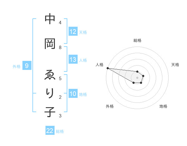 中岡 ゑり子さんを姓名の画数から五運を鑑定