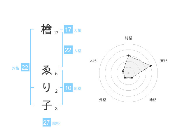 檜 ゑり子さんを姓名の画数から五運を鑑定