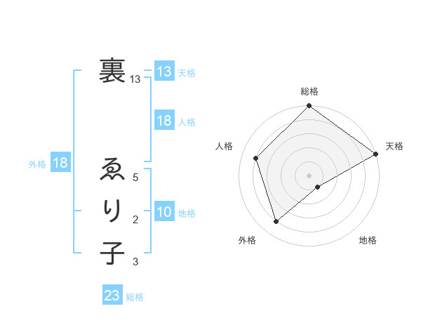 裏 ゑり子さんの天格は13画の5点!