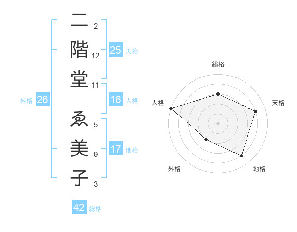 二階堂 ゑ美子さんを姓名の画数から五運を鑑定