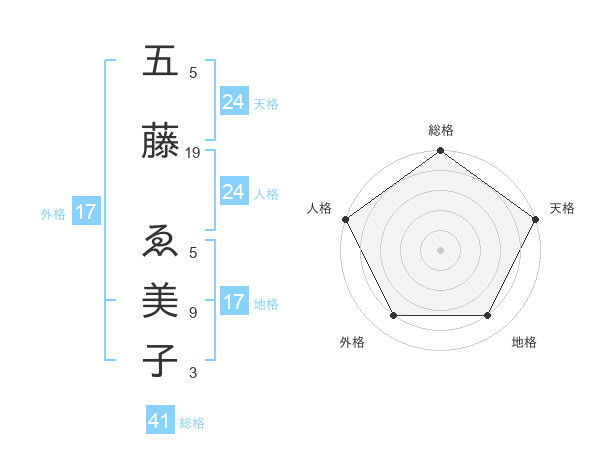 五藤 ゑ美子さんを姓名の画数から五運を鑑定