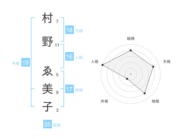 村野 ゑ美子さんの外格は19画の1点!
