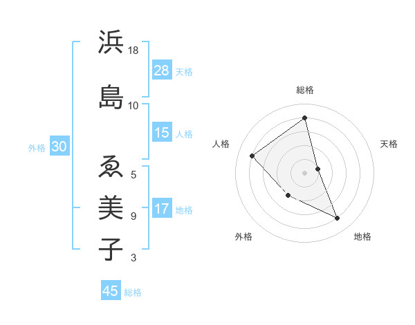 浜島 ゑ美子さんを姓名の画数から五運を鑑定