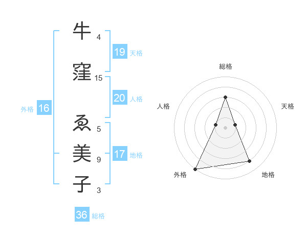 牛窪 ゑ美子さんを姓名の画数から五運を鑑定