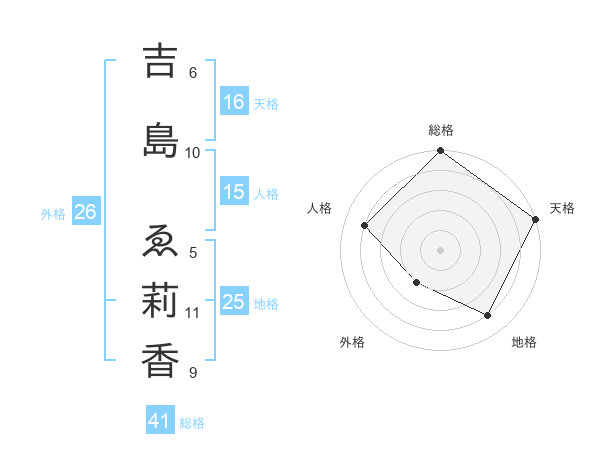 吉島 ゑ莉香さんを姓名の画数から五運を鑑定