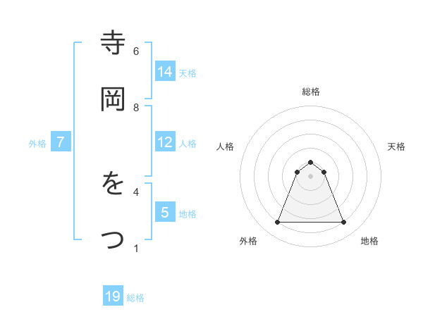寺岡 をつさんの外格は7画の4点!