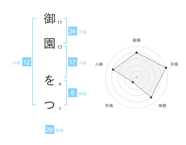 御園 をつさんの総格は29画の4点!