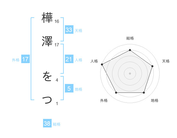 樺澤 をつさんの総格は38画の4点!