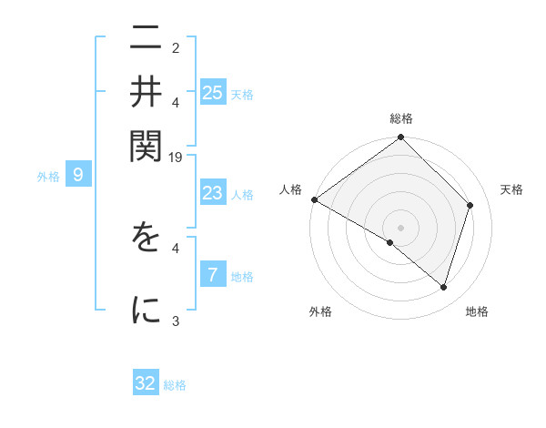 二井関 をにさんの総格は32画の5点!