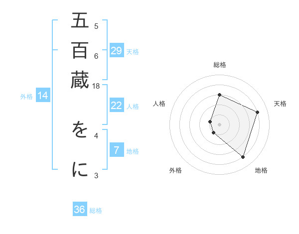 五百蔵 をにさんを姓名の画数から五運を鑑定
