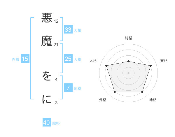 悪魔 をにさんの外格は15画の4点!