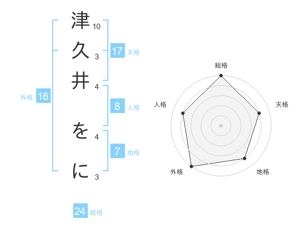 津久井 をにさんの総格は24画の5点!