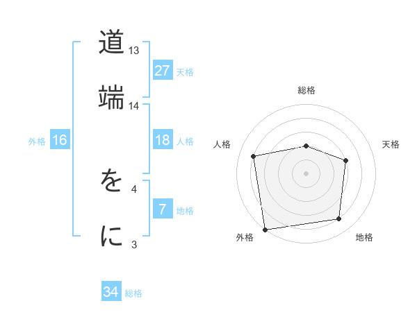 道端 をにさんの総格は34画の2点!