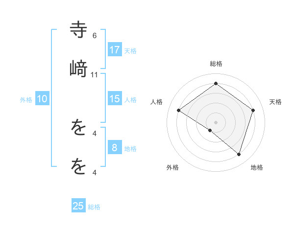 寺﨑 ををさんを姓名の画数から五運を鑑定
