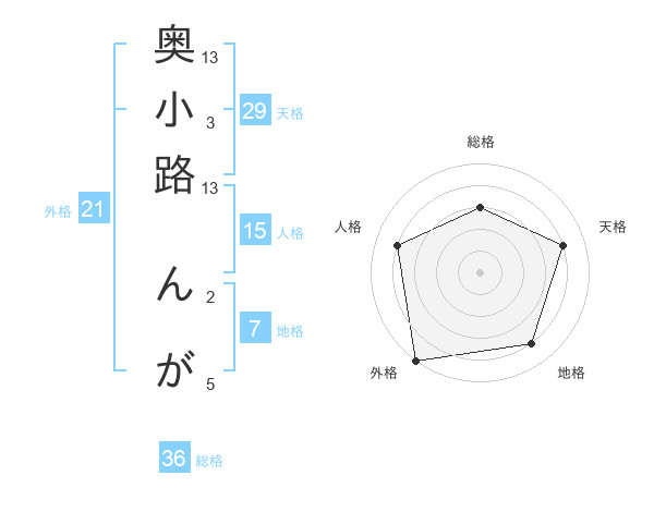 奥小路 んがさんの天格は29画の4点!