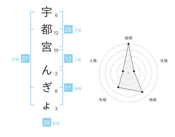 宇都宮 んぎょさんの総格は39画の5点!