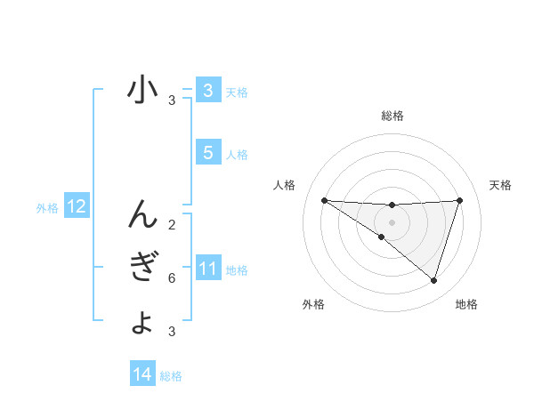 小 んぎょさんの総格は14画の1点!