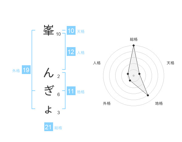 峯 んぎょさんの総格は21画の5点!