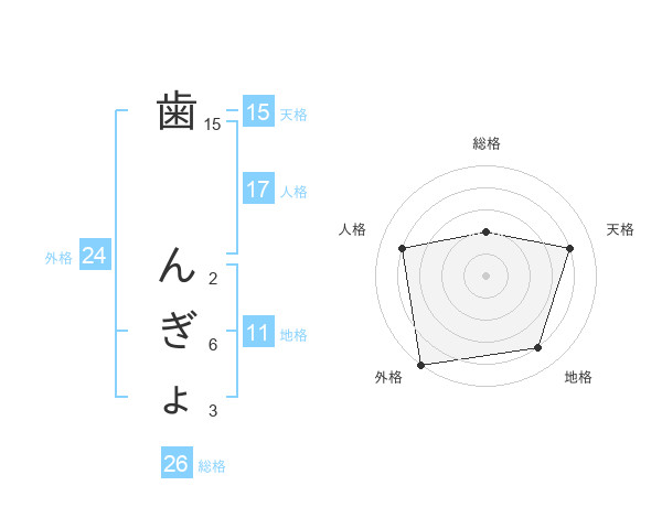 歯 んぎょさんを姓名の画数から五運を鑑定