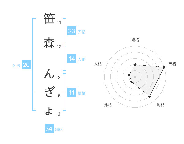 笹森 んぎょさんの天格は23画の5点!