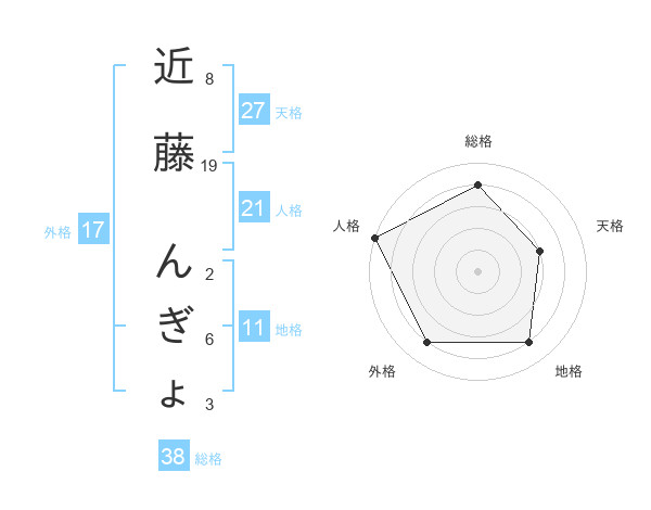 近藤 んぎょさんの総格は38画の4点!
