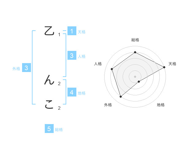 乙 んこさんの天格は1画の5点!