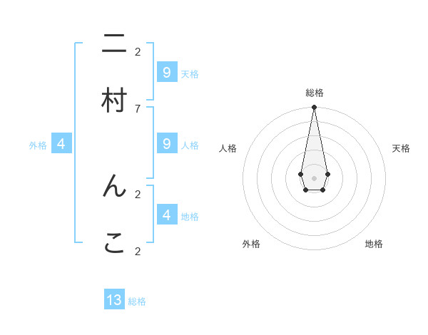 二村 んこさんの総格は13画の5点!