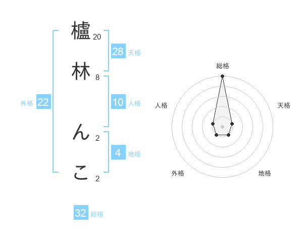 櫨林 んこさんの総格は32画の5点!
