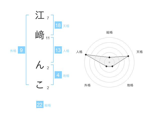 江﨑 んこさんを姓名の画数から五運を鑑定