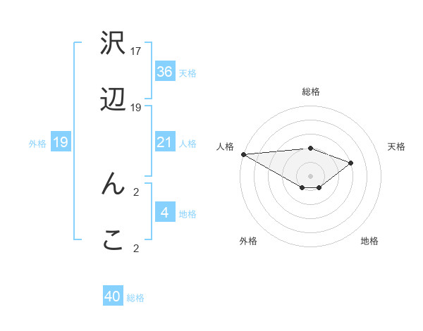 沢辺 んこさんの総格は40画の2点!