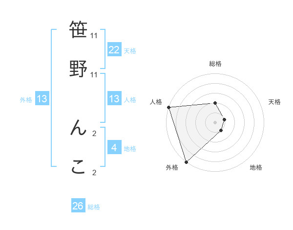 笹野 んこさんの外格は13画の5点!