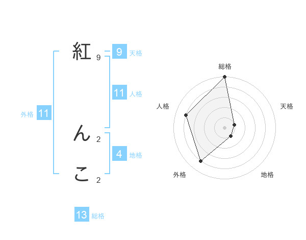 紅 んこさんの総格は13画の5点!