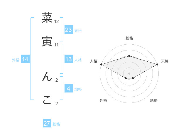 菜寅 んこさんの総格は27画の3点!
