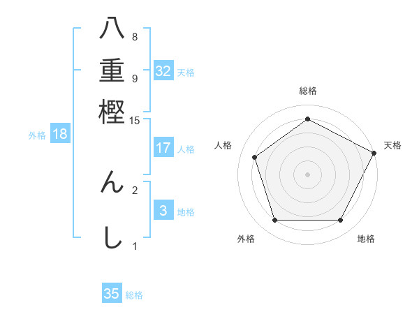 八重樫 んしさんの総格は35画の4点!