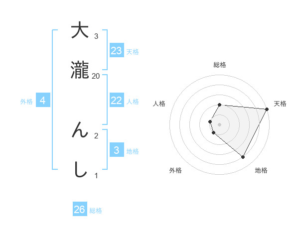 大瀧 んしさんを姓名の画数から五運を鑑定
