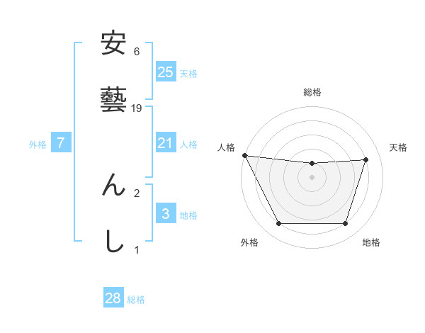 安藝 んしさんの総格は28画の1点!
