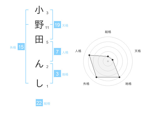 小野田 んしさんの総格は22画の1点!