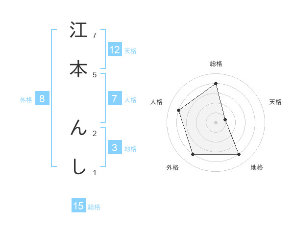 江本 んしさんの総格は15画の4点!