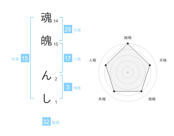魂魄 んしさんの総格は32画の5点!