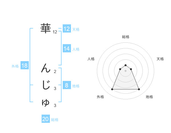 華 んじゅさんの総格は20画の1点!