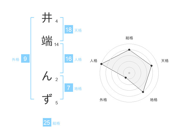 井端 んずさんの総格は25画の4点!