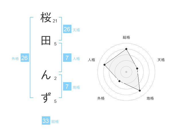 桜田 んずさんの総格は33画の4点!