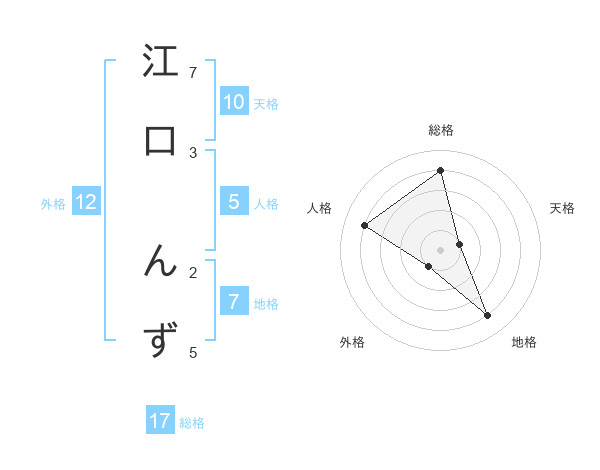江口 んずさんの総格は17画の4点!