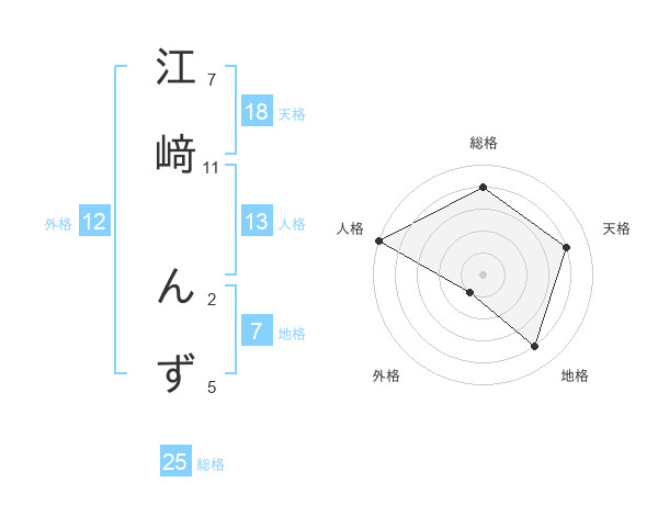 江﨑 んずさんを姓名の画数から五運を鑑定