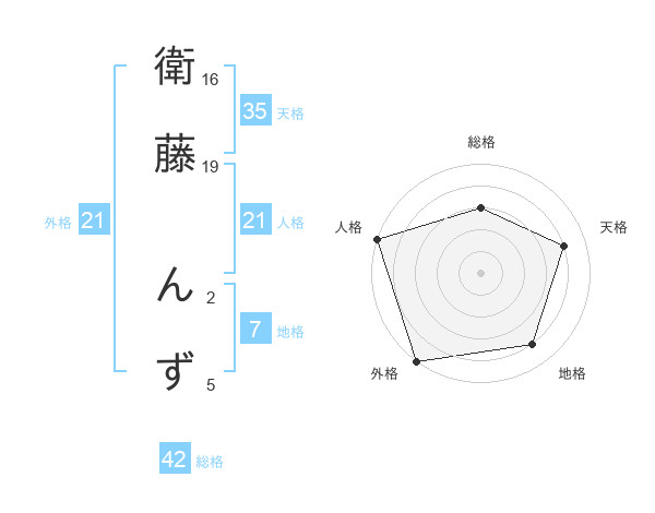 衛藤 んずさんの外格は21画の5点!