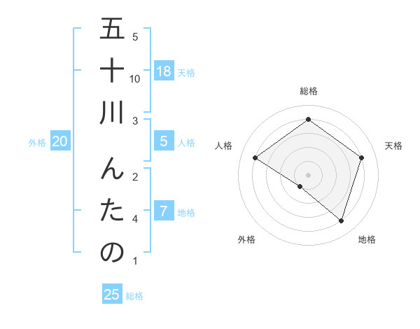 五十川 んたのさんを姓名の画数から五運を鑑定
