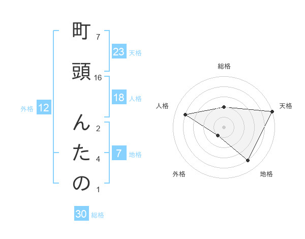 町頭 んたのさんを姓名の画数から五運を鑑定