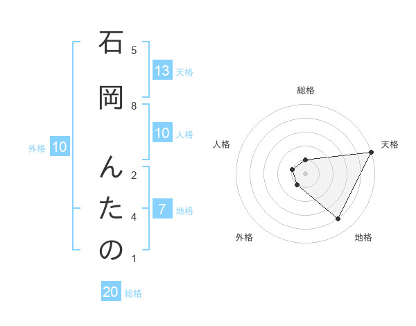 石岡 んたのさんの天格は13画の5点!