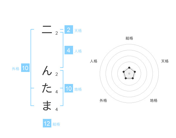 二 んたまさんの総格は12画の1点!