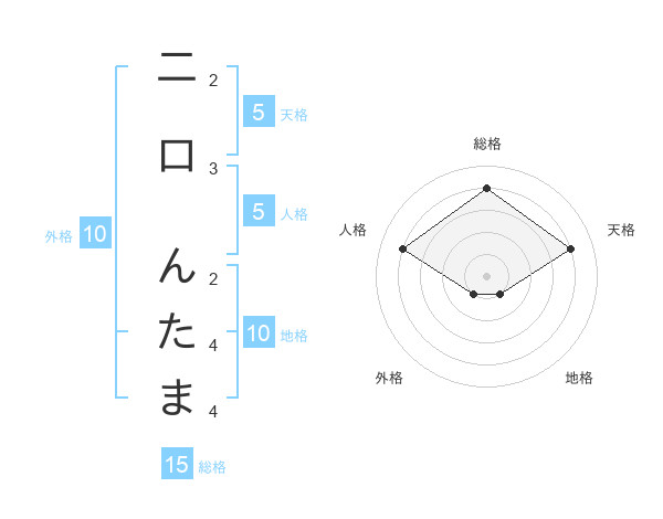 二口 んたまさんの総格は15画の4点!
